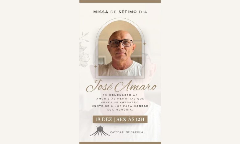 O Sindicato dos Trabalhadores em Políticas Públicas e Gestão Educacional (SAE-DF) convida a categoria, amigos e familiares para a Missa de Sétimo Dia em memória de José Amaro Filho, ex-diretor do sindicato e companheiro de luta na defesa dos trabalhadores da educação.
